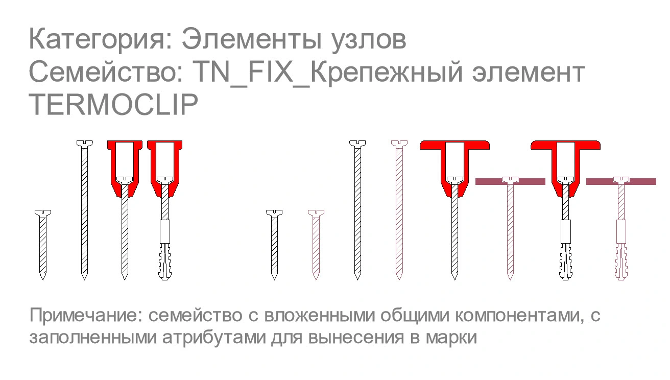Так семейство TTN_FIX_Крепежный элемент TERMOCLIP имеет вложенные общие семейства (рис. 6):
