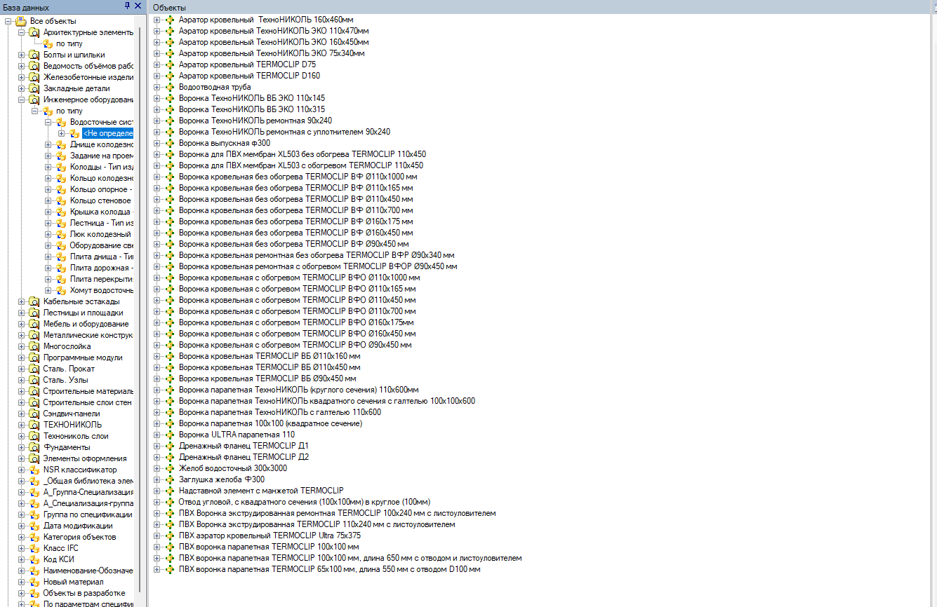 При сохранении объектов в Библиотеку объектов nanoCAD BIM Строительство они отобразятся в структуре базы данных, как показано на рис.2