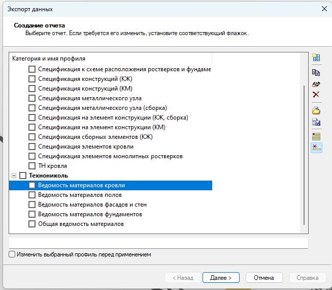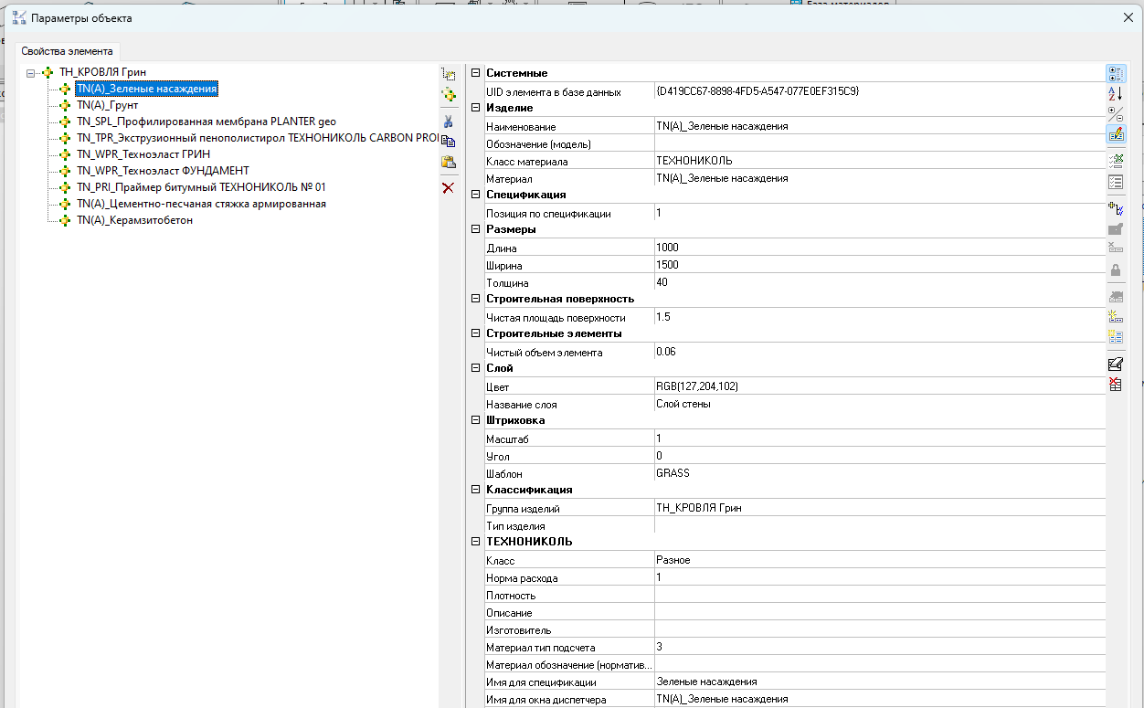 Формирование ведомостей многослойных конструкций