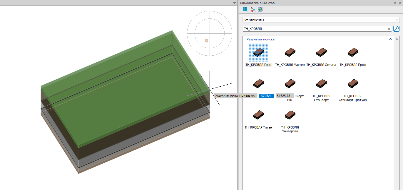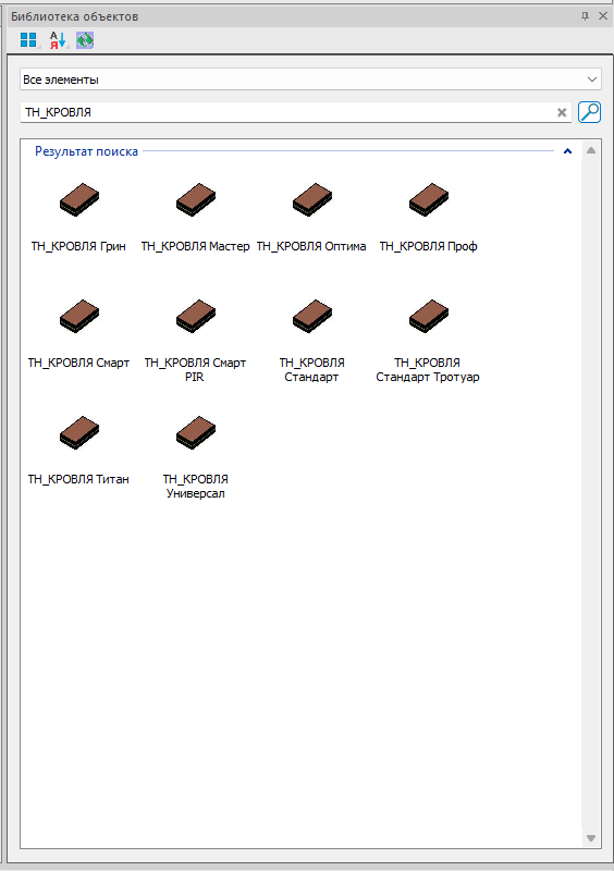 Найти соответствующую строительную поверхность в открывшемся окне «Библиотека объектов»;