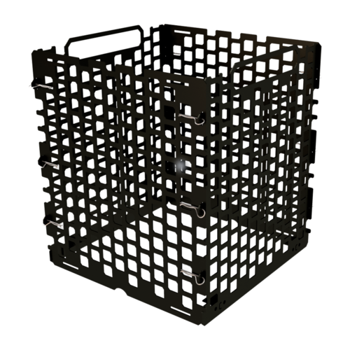 Изделие состоит из 4х стальных частей. Конструкция предусматривает быструю сборку за счет пазовых соединений отдельных стенок между собой и дополнительную фиксацию при помощи фиксаторов.