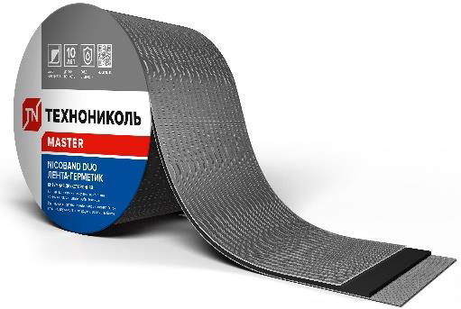 NICOBAND DUO получают путем одностороннего нанесения на антиадгезионную полимерную пленку самоклеящегося битумно-полимерного вяжущего. В качестве защитного слоя с другой стороны самоклеящегося состава используют антиадгезионную полимерную пленку.