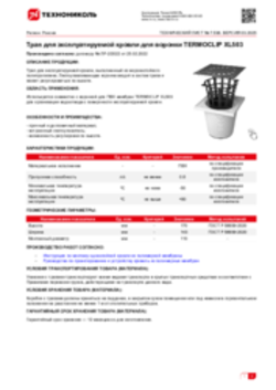 Трап для эксплуатируемой кровли, выполненный из морозостойкого полимера, с решеткой из нержавеющей стали. Для увеличения высоты трапа может использоваться совместно с удлинителем для трапа TERMOCLIP XL503.