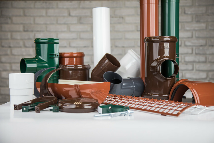 Все комплектующие пластиковой водосточной системы поставляются в индивидуальной упаковке. Дополнительно упаковываются в транспортировочную упаковку, фитинги – в коробку из гофрокартона. Каждый желоб и труба упаковывается в индивидуальную упаковку, а затем по несколько штук в транспортировочную упаковку.