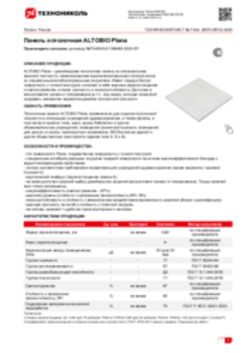 ALTOBIO Plana – дизайнерская потолочная панель из стекловолокна высокой плотности, ламинированная высококачественным стеклохолстом cо специальным антибактериальным покрытием. Имеет гладкую белую поверхность с тонкой текстурой, сочетает в себе высокое звукопоглощение и светоотражение, а также прочность и износоустойчивость. Доступна в ассортименте кромок и типоразмеров (в т.ч. под заказ), которые позволяют создавать множество вариантов дизайна потолочной плоскости.