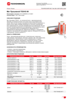 Мат Прошивной ТЕХНО – это негорючий тепло-, звукоизоляционный материал из минеральной ваты на основе горных пород базальтовой группы. Маты на всю толщину прошиваются металлической проволокой и с одной стороны имеют обкладку (кашировку) из стальной оцинкованной сетки (маркировка ОП), стальной нержавеющей сетки (маркировка НП) или стальной гальванизированной сетки (маркировка ГП) дополнительно маты могут кашироваться фольгой армированной (маркировка ФА) и неармированной (маркировка Ф). Изделия без обкладки и с обкладкой Ф относятся к негорючим (НГ) материалам, изделия с обкладкой ФА относятся к материалам с группой горючести Г1.