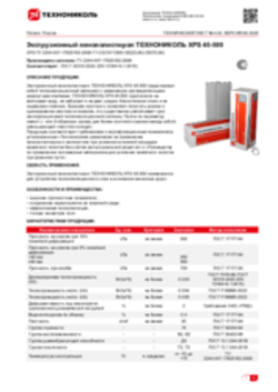 Экструзионный пенополистирол ТЕХНОНИКОЛЬ XPS 45-500 представляет собой теплоизоляционный материал с равномерно распределенными замкнутыми ячейками, который практически не впитывает воду, не набухает и не дает усадки, биологически стоек и не подвержен гниению. Высокая прочность позволяет получить ровное и одновременно жесткое основание, что существенно увеличивает срок эксплуатации всей теплоизоляционной системы.