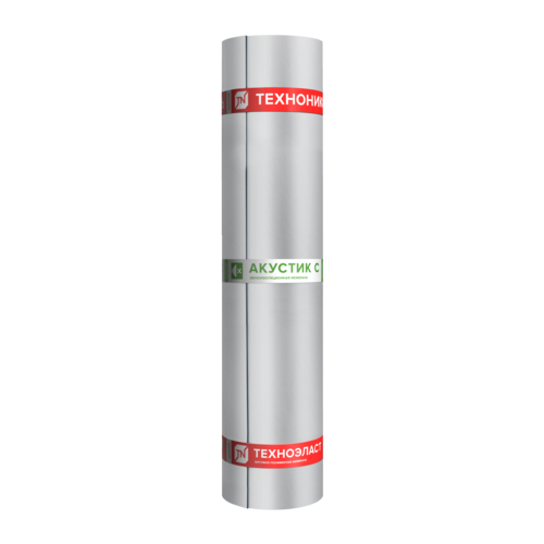 Техноэласт Акустик С – это рулонный прокладочный звукоизоляционный материал для шумоизоляции междуэтажных перекрытий с самоклеящимся боковым нахлестом. Материал предотвращает распространение ударных шумов, передающихся по несущим конструкциям здания.