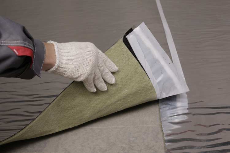 Звукоизоляция пола ТЕХНОНИКОЛЬ производится путем приклеивания битумным вяжущим металлизированной полиэфирной пленки к звукоизоляционному полотну. Материал имеет боковой битумный клеевой перехлест, защищенный силиконизированной съемной пленкой.