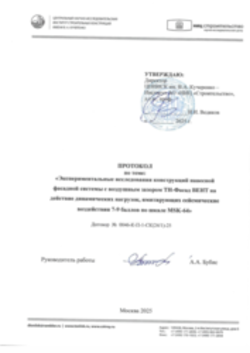 Протокол исследования конструкции системы ТН-ФАСАД Вент на действие динамических нагрузок, имитирующих сейсмическое воздействие 7-9 баллов по шкале MSK-64, 31.03.2025
