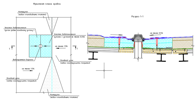 Нужно ли делать разуклонку между воронками в случае, если основной уклон задан конструкциями?