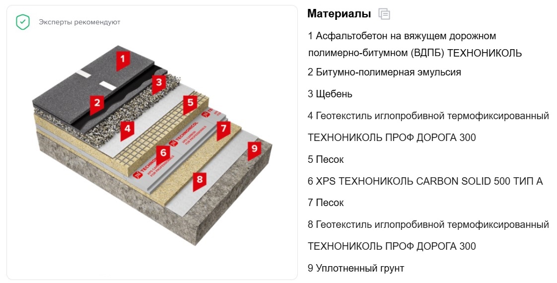 Системное решение от ТЕХНОНИКОЛЬ ТН-ДОРОГА Термо эффективно защищает конструкцию автодороги от морозного пучения грунта при промерзании. Состав системы: