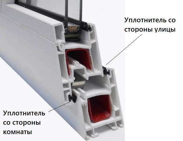 Рис. 2. Оконный уплотнитель, расположенный на прижиме створки к коробке
