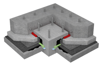 2) при обустройстве внутреннего угла при изменении направления гидроизоляционного контура;