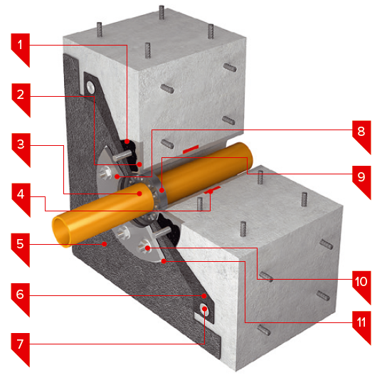 Обустройство трубной проходки с механической фиксацией к основанию с применением специальных вводов заводского изготовления