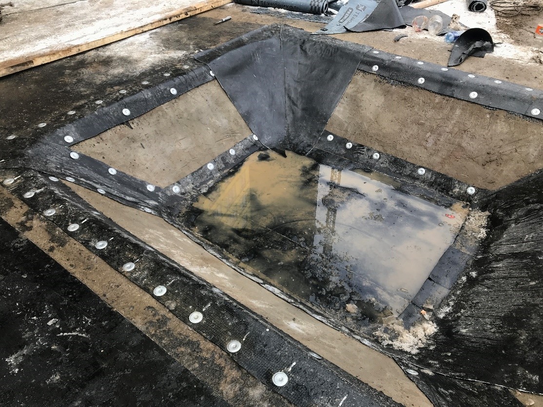 Свободная укладка материал Техноэласт Фундамент ФИКС/ТЕРРА в конструкциях приямков, углублений и смены высотных отметок.