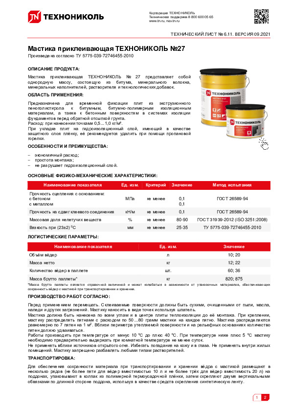 Однако специально разработаный продукт Мастика приклеивающая ТЕХНОНИКОЛЬ №27 может использоватся в качестве приклейки плит XPS к основанию.