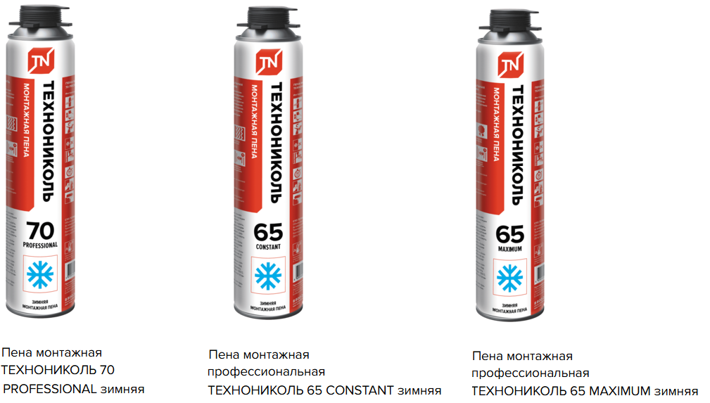 В линейке продуктов ТЕХНОНИКОЛЬ — около 20 видов профессиональных монтажных пен. Они различаются объемами баллона, сезонностью, температурой применения.