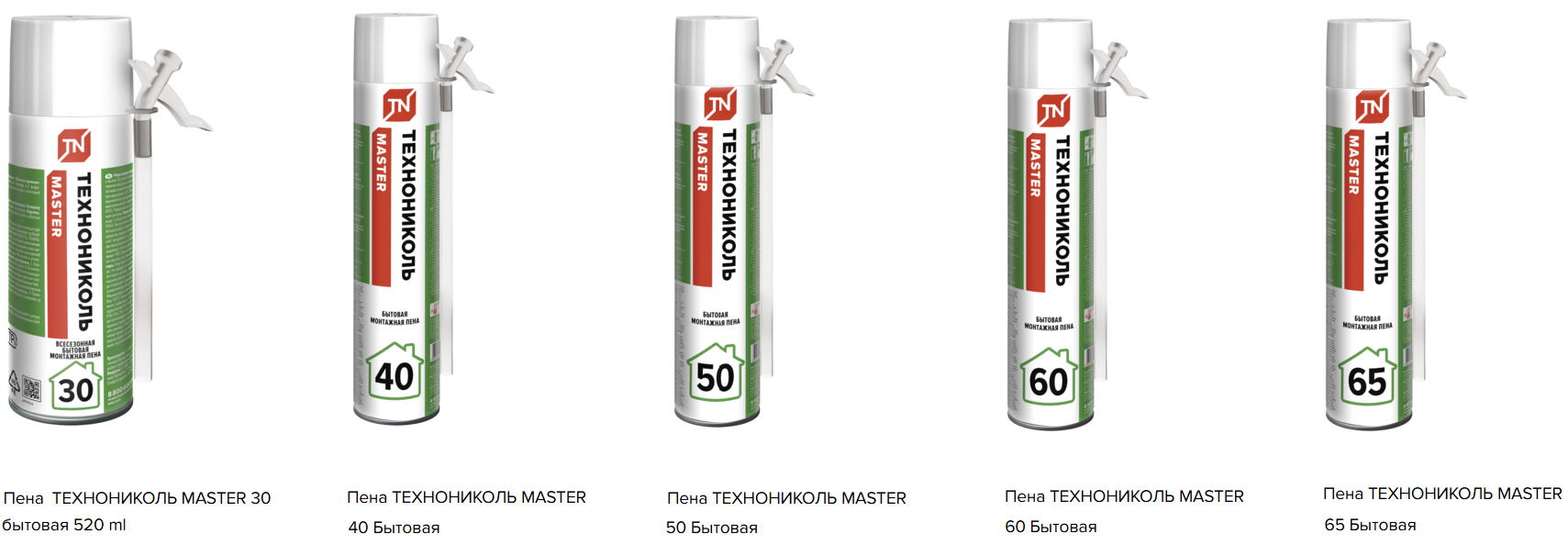 ТЕХНОНИКОЛЬ предлагает пену монтажную ТЕХНОНИКОЛЬ MASTER бытовую в нескольких вариантах. Выбор зависит от объема выхода: