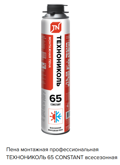 Среди продуктов ТЕХНОНИКОЛЬ самое низкое вторичное расширение — у Пены монтажной ТЕХНОНИКОЛЬ профессиональной 65 CONSTANT всесезонной. Низкое вторичное расширение позволяет работать с легкодеформируемыми конструкциями.
