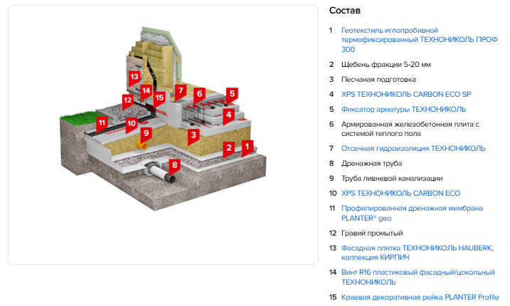 Решение соответствует системе ТЕХНОНИКОЛЬ ТН-ФУНДАМЕНТ Плита УШП