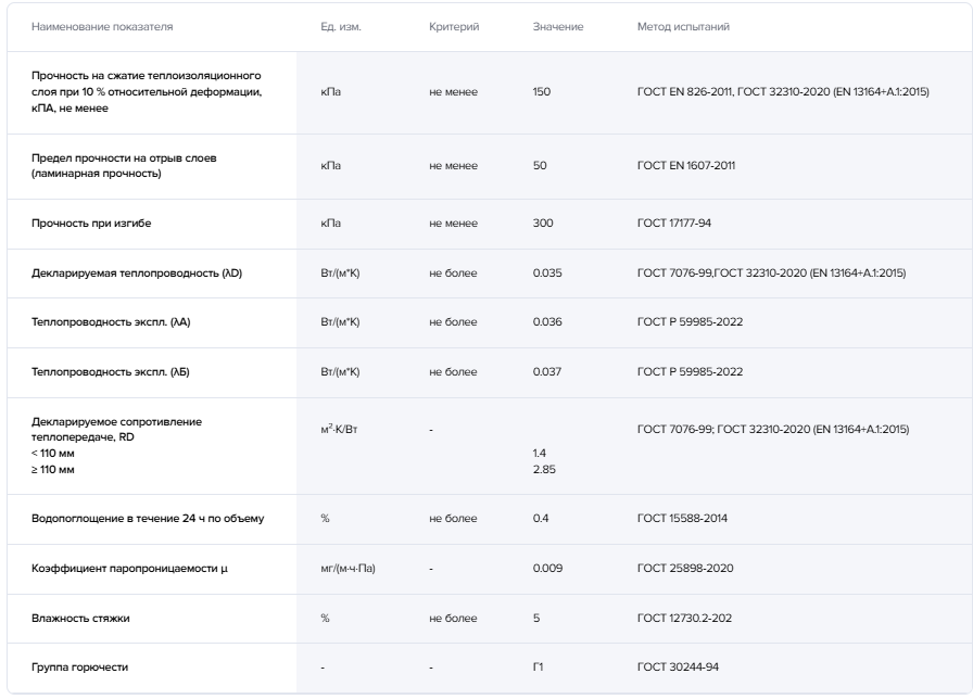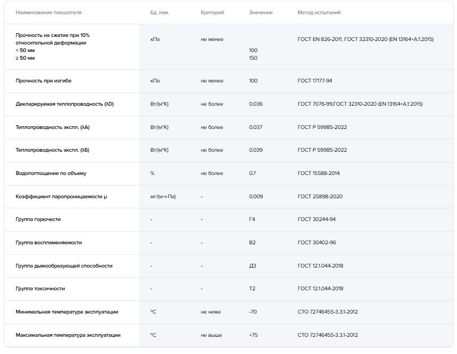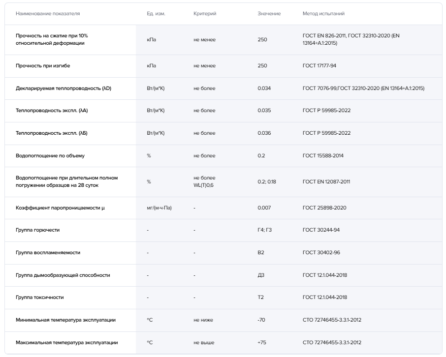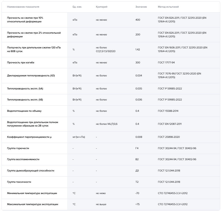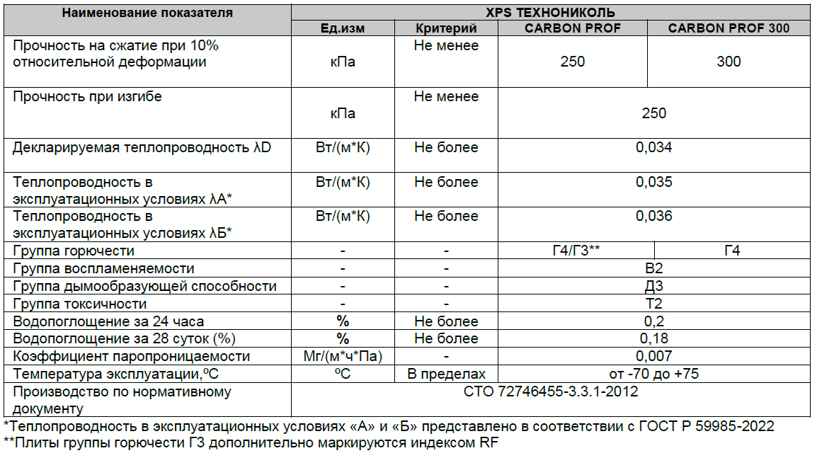 Теплоизоляционные плиты могут выпускаться с прочностью на сжатие при 10 %-ной относительной деформации выше указанных в таблице значений, в этом случае продукция маркируется отдельным числовым значением, характеризующим величину прочности плиты на сжатие в кПа (например, 200, 250, 300, 400). При этом значения всех остальных показателей соответствуют значениям, указанным в таблице. Один из таких продуктов активно применяется проектировщиками в решениях - XPS CARBON PROF 300.