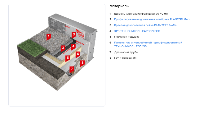 Компанией Технониколь были разработаны и представлены системные решения по утеплению отмосток: ТН-ОТМОСТКА Гравий Термо, ТН-ОТМОСТКА Тротуар Термо, ТН-ОТМОСТКА Бетон Термо.