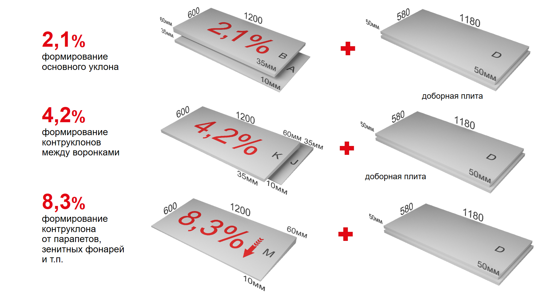 3. XPS ТЕХНОНИКОЛЬ CARBON PROF SLOPE в качестве устройства уклона плоских кровель;