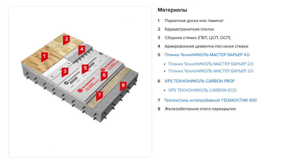 Решение по теплоизоляции пола экструзионным пенополистиролом соотвествует системе ТН-ПОЛ Стандарт