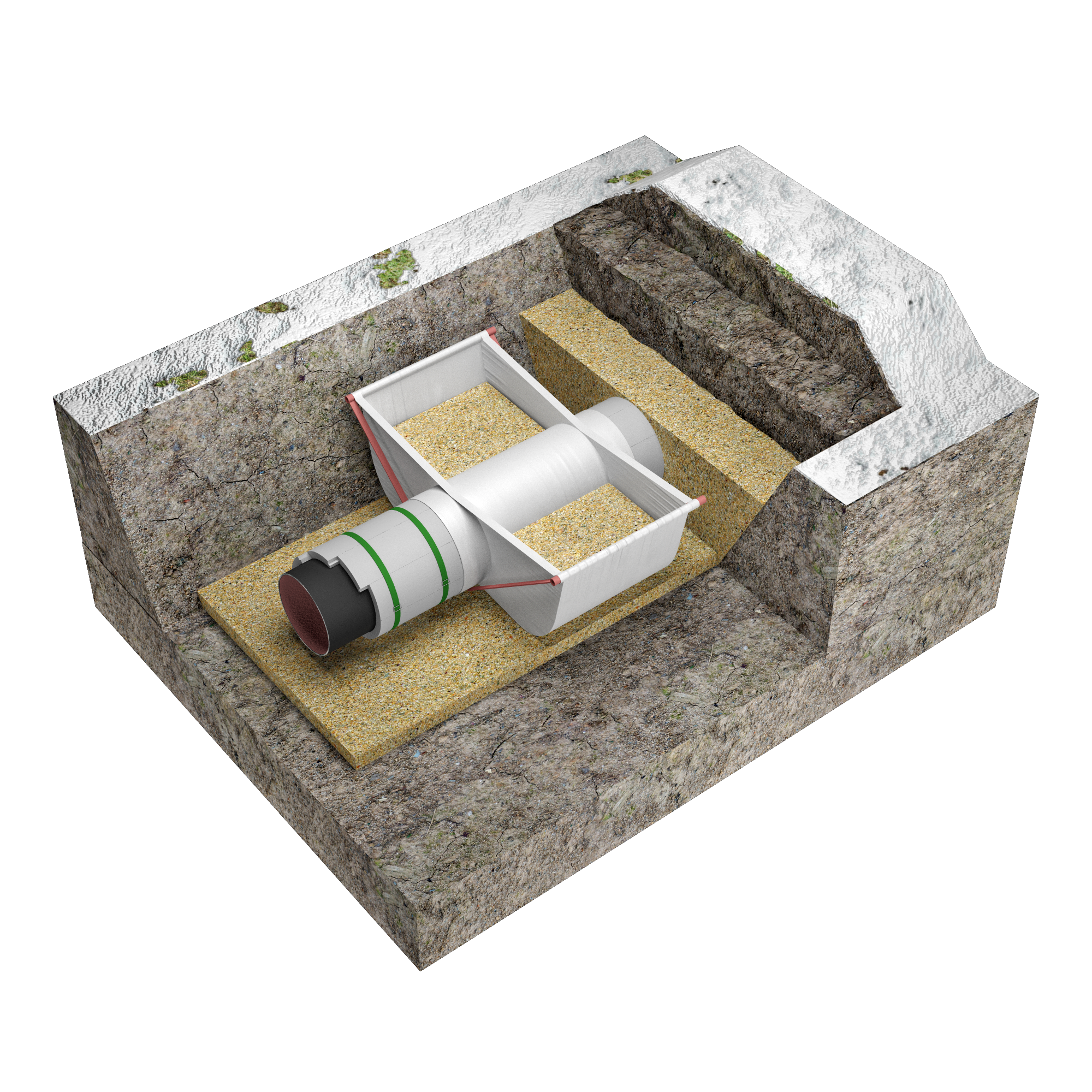 - Высокая прочность: XPS обладает высокой прочностью на сжатие, что делает его идеальным для использования в качестве изоляции в открытой траншейной прокладке, без необходимости дополнительной механической защиты;