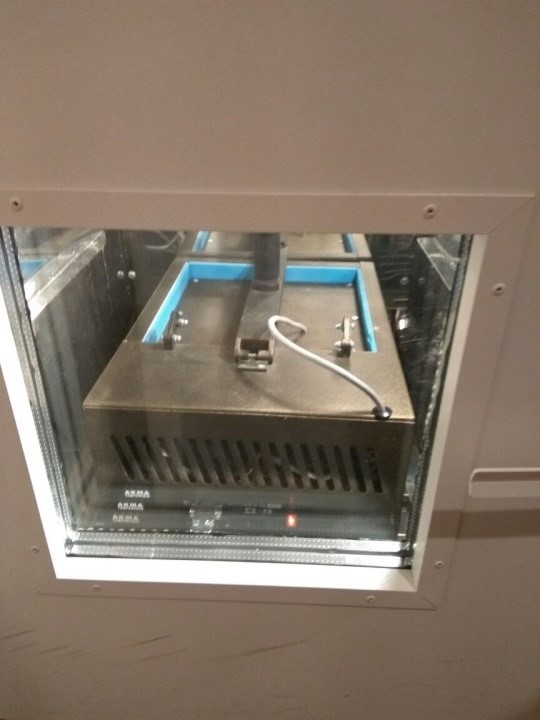 Рис. 2 Испытания на измерителе теплопроводности ИТП-МГ4 «250», помещенном в климатическую камеру