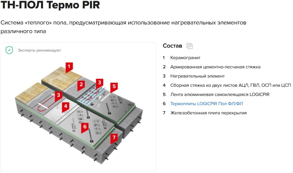 Примеры применения: в системе ТН-ПОЛ Термо PIR термоплиты применяются как подложка, максимально отражающая тепло наверх.
