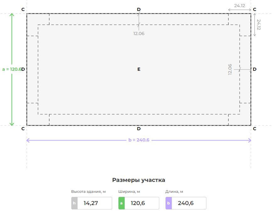 И внести данные по его геометрии, длина - 240,6м, ширина - 120,6м.