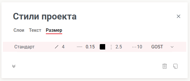 Пользователь может создать и настроить стили отображения для слоёв элементов, текста и размерных линий. Двойное нажатие на один из стилей активирует его стилем по умолчанию.