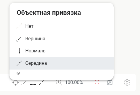 Объектная привязка Режим, при котором характерные точки существующих элементов служат точками «стыковки» для строящихся элементов. По умолчанию включены все имеющиеся режимы. |
