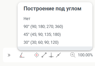 Построение под углом Элементы полилинии при построении будут «фиксироваться» под углом, выбранном пользователем. По умолчанию установлено значение «Нет». |