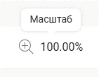 Масштаб Отвечает за масштаб отображения пространства модели. Изменение масштаба происходит с помощью прокрутки мышью. При нажатии на значок «Лупа» происходит сброс масштаба до значения 100%. |