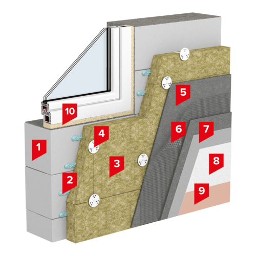 - Материалы для слоёв №4-10 применить в соответствии с рекомендациями системы ТН-ФАСАД Профи.