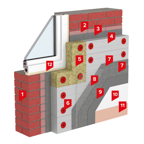 Система штукатурного фасада с теплоизоляцией из экструзионного пенополистирола по каменному основанию.