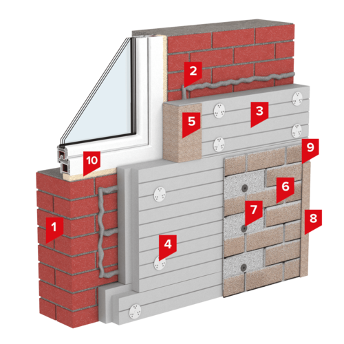 Данное решение подразумевает отсутствие вентиляционного зазора между слоем теплоизоляции и фасадной плиткой, поэтому попадает под ограниченную гарантию 10 лет. При этом, если решение применяется на цоколе при неотапливаемом подвале, гарантия будет составлять 20 лет. При монтаже системы теплоизоляции на стены из газосиликатных блоков, монтаж необходимо производить после завершения всех отделочных работ, связанных с мокрыми процессами, а также после высыхание самих блоков.