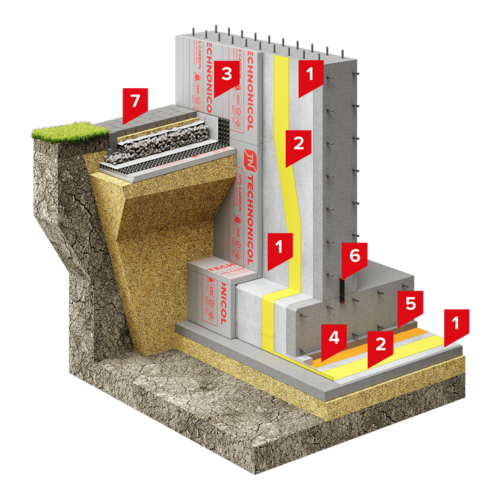 В качестве теплоизоляционного слоя подземной части здания используется экструзионный пенополистирол ТЕХНОНИКОЛЬ CARBON PROF, применение которого позволяет защитить конструкцию фундамента от промерзания, тем самым создавая оптимальные температурно-влажностные условия эксплуатируемого помещения.