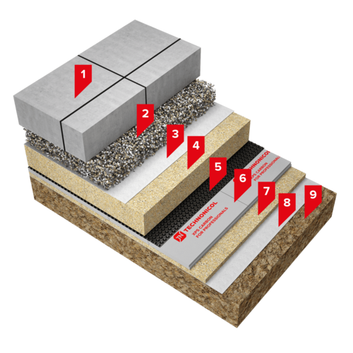 Для защиты от механических повреждений теплоизолирующей прослойки из плит XPS ТЕХНОНИКОЛЬ CARBON SOLID 500 ТИП А следует применять Геосинтетическую мембрану ПЛАНТЕР Д (20х4м).