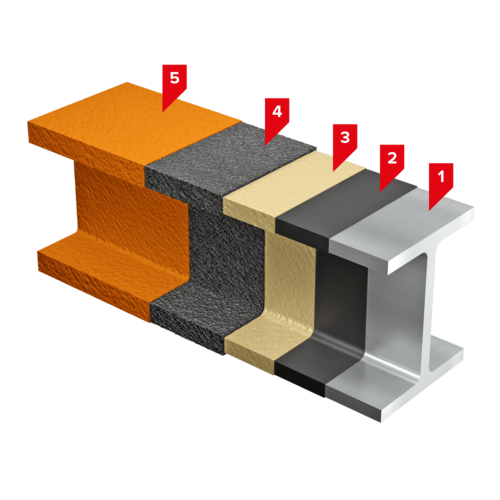Применяется для улучшения характеристик огнестойкости стальных конструкций в условиях открытой атмосферы, в сырых неотапливаемых помещениях, а также в закрытых отапливаемых помещениях при температуре до минус 60°С и влажности до 100%.