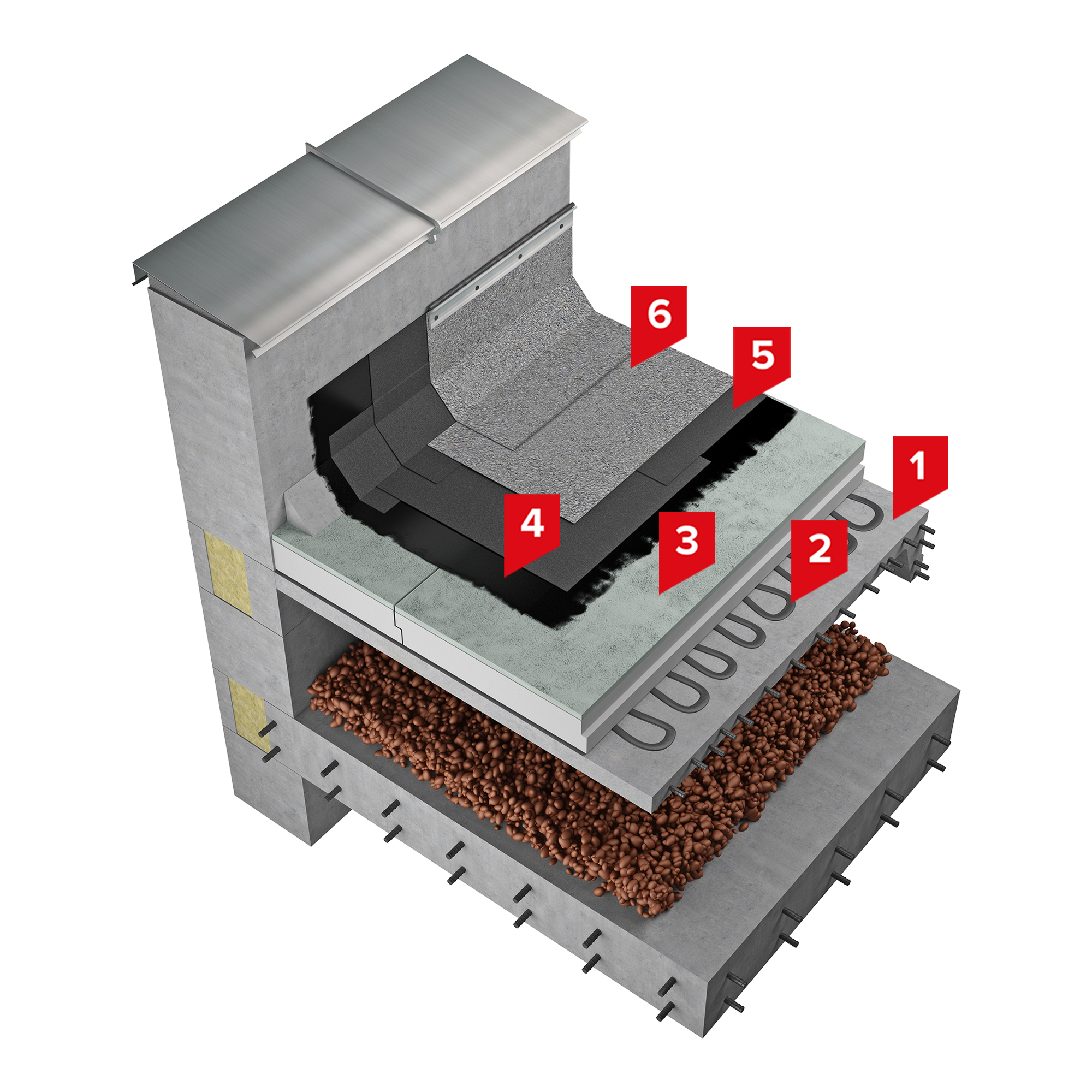 Кровельный ковер выполняется из битумно-полимерного материала марки Техноэласт. Допускается применение в системы материала марки Унифлекс.