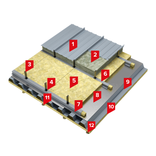 - 2. Согласно заключению по оценке пределов огнестойкости и классов пожарной опасности конструкций кровельных систем с промышленным фальцем, ФГБУ ВНИИПО МЧС России, 2025.