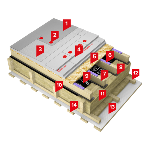 Система изоляции применяется при устройстве плоских совмещенных кровель, выполненных по конструкциям на основе деревянного каркаса. Особенностью системы является наличие вентилируемого зазора, организованного деревянной обрешеткой.