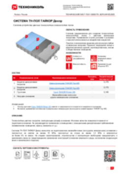 Система ТН-ПОЛ ТАЙКОР Декор наносится на подготовленное железобетонное (или другое минеральное) основание с прочностью на сжатие не менее 15 МПа, прочностью на отрыв не менее 1,5 МПа и влажностью не более 4% по массе. На стадиях проектирования, строительства и эксплуатации необходимо предусмотреть и реализовать меры по предотвращению увлажнения конструкций (снижение влажности среды, исключение конденсации влаги и капиллярного подсоса).