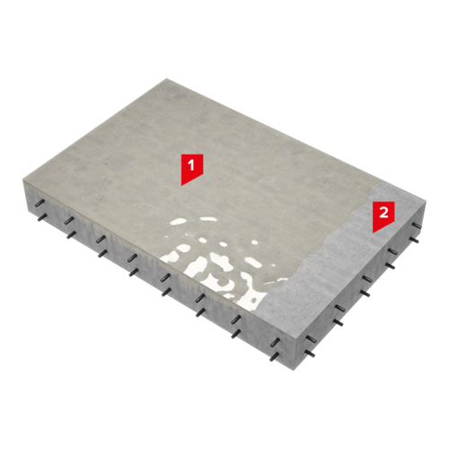 Перед нанесением материалов бетон должен быть выдержан не менее 28 суток до полного набора прочности. Влажность основания должна быть не более 4 %. Подготовку бетонной поверхности перед нанесением защитного покрытия осуществляют для придания бетону заданной шероховатости, а также для очистки ранее окрашенных поверхностей от пыли, грязи, цементного молочка, посторонних включений и отслаивающихся старых покрытий