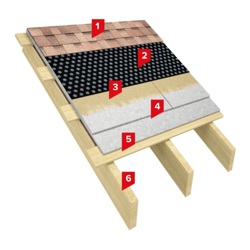 Система по устройству скатной крыши с покрытием из гибкой черепицы, смонтированной путем наплавления на специализированный подкладочный ковер, наплавленный на негорючее основание. Данное техническое решение предполагает использование в качестве основания под гибкую черепицу листовых материалов (ЦСП, АЦЛ, фиброцементные плиты). Листы укладываются в 2 слоя со смещением для перекрытия швов. Метод наплавления черепицы позволяет укладывать материал на кровлях с уклоном от 5 до 60 0. Возможность применения гибкой черепицы ТЕХНОНИКОЛЬ методом наплавления по основанию из ЦСП, АЦЛ или фиброцементных плит подтверждены лабораторными испытаниями ЦНИИПромзданий. Метод подходит для всех однослойных и многослойных коллекций гибкой черепицы ТЕХНОНИКОЛЬ, кроме трехслойных (Атлантика и Континент) и двухслойной Вестерн.