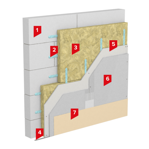 Бескаркасная клеевая система внутренней звукоизоляции стен/перегородок с применением плит из каменной ваты
